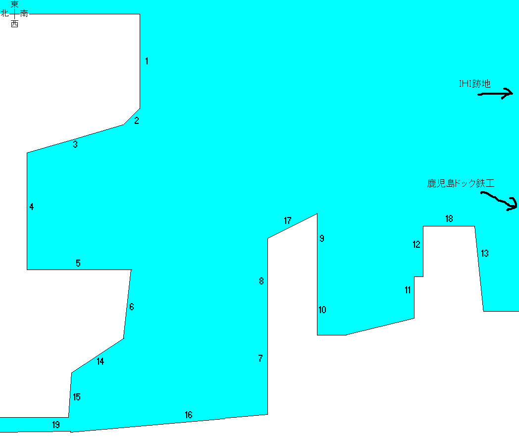 | 19 | 水路の入口付近は南九エンジンドック、奥のほうはプレジャーボート等のための浮き桟橋があります。 |